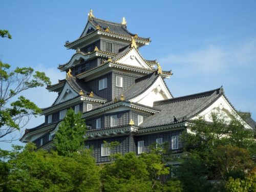 (岡山城は宇喜多直家が前身となる石山の城を築き、子・秀家が完成させた。)